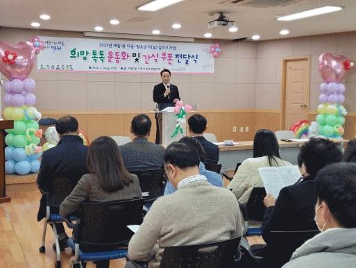 ¿ÃÇØ·Î 3ȸ°¸¦ ¸ÂÀº À̹ø Çà»ç´Â °è¸²1µ¿ Áö»çÇù ÈÄ¿øÀ» ¹Þ¾Æ ¡®¾Æµ¿¡¤Ã»¼Ò³â ±â(Ѩ) »ì¸®±â ƯȻç¾÷¡¯ ÀÏȯÀ¸·Î Çлý°ú Çкθð ÀǰßÀ» ¹Ý¿µÇØ 1Àδç 12¸¸ 5õ ¿ø »ó´çÀÇ ¿îµ¿È¡¤°£½Ä ÄíÆùÀ» µ¹º½ÀÌ ÇÊ¿äÇÑ ÇлýµéÀÇ ºÎ¸ð¿¡°Ô Àü´ÞÇß´Ù.