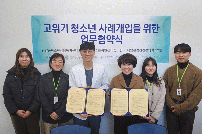 À̹ø ¾÷¹« Çù¾àÀ» ÅëÇØ ´ã¾ç±ºÃ»¼Ò³â»ó´ãº¹Áö¼¾ÅÍ¡¤²Þµå¸²¿¡¼ ¹ß±¼ÇÑ À§±â û¼Ò³â¿¡°Ô ´õ¸¼ÀºÁ¤½Å°Ç°ÀÇÇаúÀÇ¿øÀº ÀÇ·áÁö¿ø¼ºñ½º¸¦, ´ã¾ç¾ð¾îÇнÀ¼¾ÅÍ´Â ÀÎÁöÇнÀÄ¡·á¼ºñ½º¸¦ Á¦°øÇØ Ã»¼Ò³âÀÇ °Ç°ÇÑ ¼ºÀå°ú ¹ß´ÞÀ» Á¶·ÂÇϴµ¥ ÇÊ¿äÇÑ »óÈ£Çù·ÂÀ» ±»°ÇÈ÷ Çϱâ·Î Çß´Ù.