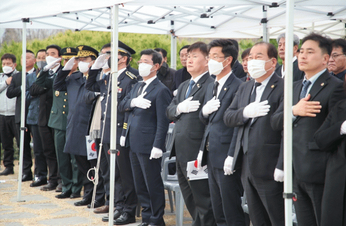 Á¤ÀÎÈ ±¤¾ç½ÃÀåÀº ¡°¿ì¸® Á¶±¹ÀÇ ±¹±Ç¼öÈ£¿Í ¹ø¿µÀ» À§ÇØ ¸ñ¼û ¹ÙÃÄ Çå½ÅÇϽоֱ¹¼±¿µé²² ¸Ó¸® ¼÷¿© °æÀǸ¦ Ç¥Çϰí, µ¶¸³À¯°øÀÚ À¯Á·°ú ÈÄ¼Õ ¿©·¯ºÐ²²µµ ±íÀº Á¸°æ°ú °¨»çÀÇ ¸»¾¸À» µå¸°´Ù¡±¸ç ¡°¾ÕÀ¸·Îµµ À§´ëÇÑ ¿ª»ç¿Í Á¤½ÅÀ» °è½ÂÇÏ°í ³ª¶ó¸¦ À§ÇØ Èñ»ýÇϽŠºÐµéÀÌ Á¸°æ¹Þ°í ¿¹¿ì¸¦ ¹ÞÀ» ¼ö ÀÖµµ·Ï º¸ÈÆ ºÐÀ§±â Á¶¼º¿¡ ÃÖ¼±À» ´ÙÇØ ³ª°¡°Ú´Ù¡±°í ¸»Çß´Ù.