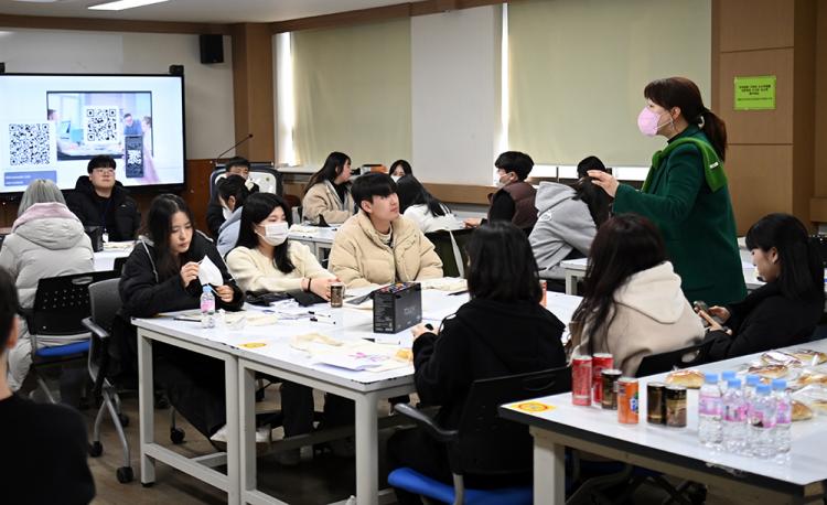 À̾î Àü°ø¸Àº¸±â ¡®³ª¸¸ÀÇ ·Î°í¸¸µé±â(¹«Áö ¿¡ÄÚ¹é)¡¯ Àü°øÃ¼Çè((´ã´ç ¿ÀÅ¿ø ±³¼ö)Àº ½ÅÀÔ»ýµé ½º½º·Î°¡ »ý°¢ÇÏ´Â ¡®³ª¡¯¸¦ »ó¡ÇÏ´Â À̹ÌÁö·Î ·Î°í¸¦ µðÀÚÀÎÇϰí, ¹«Áö ¿¡Äڹ鿡 ·Î°í µðÀÚÀÎÀ» ±×·Á ¸¶Ä«·Î ä»öÇÏ¿© ¿Ï¼º½ÃŰ´Â ½Ç½ÀÀ» Çß´Ù. ¡®³ª¸¸ÀÇ ·Î°í¡¯°¡ ´ã±ä ¹«Áö ¿¡ÄÚ¹éÀº ½Ã°¢À¶ÇÕµðÀÚÀÎÇаú ½ÅÀÔ»ýµéÀÌ Àü°øÃ¼ÇèÀ» ÅëÇØ ¿Ï¼ºÇÑ Ã¹ ÀÛǰÀÌ µÇ¾ú´Ù.