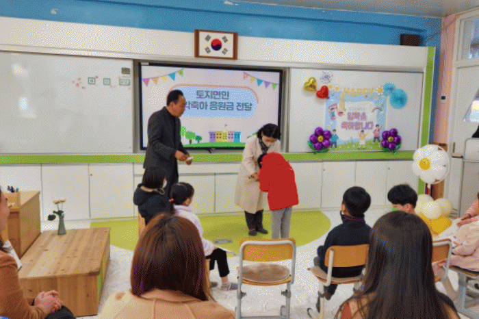 À̳¯ ÀÔÇнĿ¡´Â ÅäÁö¸éÀå°ú ÀÌÀå´ÜÀåÀÌ Âü¼®ÇÏ¿© ÅäÁö¸é¹ÎÀ» ´ëÇ¥ÇÏ¿© ÀÔÇÐÃàÇϱÝÀ» Àü´ÞÇϰí ÅäÁö¸é¿¡ ¼ÒÀçÇÑ Çб³·Î Àڳฦ ÀÔÇнÃÄÑÁØ Çкθð´Ôµé¿¡°Ô °í¸¶¿òÀ» Ç¥Çϰí, ¾ÆÀ̵éÀÌ ÇູÇÑ Çб³»ýȰÀ» º¸³¾ ¼ö ÀÖµµ·Ï Çб³»Ó¸¸ ¾Æ´Ï¶ó Áö¿ª»çȸ°¡ ÇÔ²² °ü½É°ú ÀÀ¿øÀ» º¸³»°Ú´Ù´Â ÀÇÁö¸¦ Çлý°ú Çкθð, Çб³ Ãø¿¡ Àü´ÞÇϸç ÀÔÇнÄÀ» ÃàÇÏÇß´Ù.