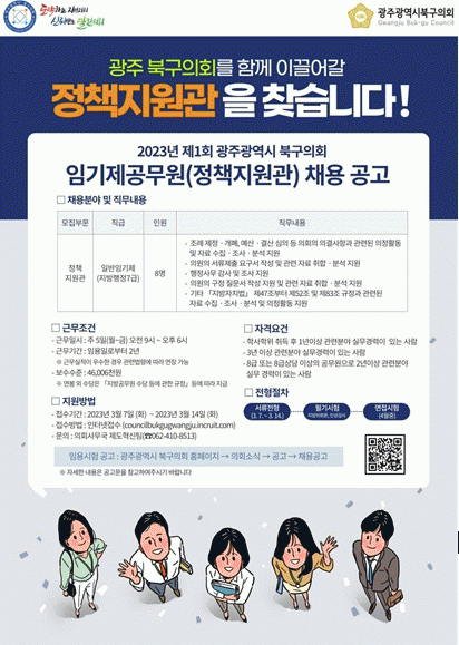 À̹ø ä¿ëÀº Áö³ÇØ¿¡ À̾î Áö¹æÀÚÄ¡¹ý Àü¸é °³Á¤À¸·Î »õ·Î µµÀÔµÈ Á¤Ã¥Áö¿ø Àü¹®ÀηÂÀÎ Á¤Ã¥Áö¿ø°üÀ» Ãß°¡·Î ¼±¹ßÇϱâ À§ÇÑ °ÍÀ¸·Î ä¿ëÀοøÀº 8¸íÀ̸ç, ÁÖ¿ä¾÷¹«´Â Á¶·Ê Á¦¡¤°³Á¤ µî ÀÔ¹ý Ȱµ¿, ÇàÁ¤»ç¹«°¨»ç¡¤Á¶»ç ¹× ¿¹¡¤°á»ê ½ÉÀÇ Áö¿ø, ÀÇÁ¤ÀÚ·á ¼öÁý¡¤Á¶»ç µî ÀÇÁ¤È°µ¿ Áö¿ø µî¿¡ °üÇÑ »çÇ×ÀÌ´Ù.