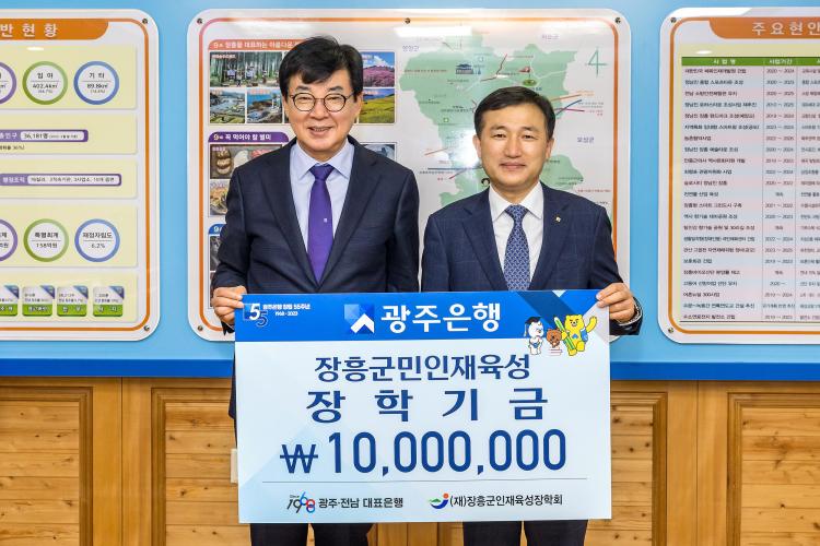 Àü´Þ½Ä¿¡¼ ±¤ÁÖÀºÇàÀº (Àç)ÀåÈﱺÀÎÀçÀ°¼ºÀåÇÐȸ¿¡ 1õ¸¸¿øÀÇ ÀåÇбâ±ÝÀ» Àü´ÞÇßÀ¸¸ç, ÀÌ´Â ÀåÈﱺ ±³À° ¹ßÀü ¹× Áö¿ªÀÎÀç ¾ç¼ºÀ» À§ÇØ ¾²¿©Áú ¿¹Á¤ÀÌ´Ù.