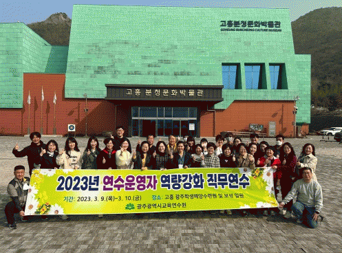 ±¤ÁÖ±³À°¿¬¼ö¿ø ä°æ¼÷ ¿øÀåÀº ¡°À̹ø ¿¬¼ö·Î Ÿ ±â°ü°ú ±³·ù¸¦ ÅëÇÑ »õ·Î¿î ¾ÆÀ̵ð¾î °øÀ¯¿Í ´Ù¾çÇÑ Àü¹®¼ºÀ» °®Ãá ¿¬¼ö¿î¿µÀڷμ ¹ßÀüÀÇ °è±â°¡ µÇ±æ ¹Ù¶õ´Ù¡±¸ç, ¡°2023³â »õ·Ó°Ô Ãâ¹ßÇÏ´Â ±¤ÁÖ±³À°ÀÇ ÀÏ¿øÀ¸·Î½á ´Ù¾ç¼ºÀ» ǰÀº ½Ç·Â ±¤ÁÖ±³À° ½ÇÇöÀ» À§ÇØ ÀüÁ÷¿øÀÌ ÈûÀ» ¸ð¾ÆÁÖ±æ ´çºÎÇÑ´Ù¡±°í ¸»Çß´Ù.