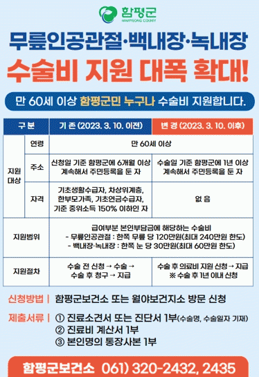 ¹«¸Àΰø°üÀýÀº ÇÑÂÊ ¹«¸´ç 120¸¸¿ø¾¿ ÃÖ´ë 240¸¸¿ø, ¹é³»À塤³ì³»Àå°ú °°Àº ¾ÈÁúȯ ¼ö¼úÀº ÇÑÂÊ ¾È(äÑ)´ç 30¸¸¿ø¾¿ ÃÖ´ë 60¸¸¿ø±îÁö Áö¿øµÈ´Ù.