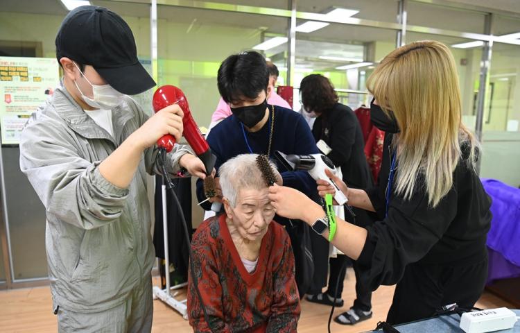 [ÅåÅå´º½º]È£³²´ëÇб³ ºäƼ¹Ì¿ëÇаú(ÇаúÀå ÀüÇöÁø)´Â 3¿ù 14ÀÏ ¿ÀÈÄ È¼ø±º ȼøÀ¾ Çö´ë ³ëÀοä¾ç¿ø¿¡¼ ¡®Àü°øºÀ»ç ÇöÀåÇнÀ¡¯(Field Trip, ÀÌÇÏ FT)ÀÇ ÀÏȯÀ¸·Î ¾î¸£½Å µé(¿©¼º 13¸í, ³²¼º 7¸í)ÀÇ Çì¾î ½ºÅ¸Àϸµ°ú ¸ÞÀÌÅ©¾÷À» ÇØµå¸®´Â ¡®¾î¸£½Å ²É´ÜÀ塯 ºÀ»çȰµ¿À» ¹ú¿´´Ù.