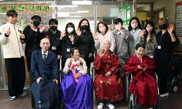 Çö´ë ³ëÀοä¾ç¿øÀÇ ÀÌÁ¤¾Æ ¿øÀåÀº ¡°³ªÀ̰¡ ¸¹À¸½Ã°í °Ç°ÀÌ ±¦ÂúÀ¸½Å ¾î¸£½Å 20¿©ºÐÀÇ °¡Á·µé¿¡°Ô ÃëÁö¸¦ ¾Ë·Á ÀüÇØ¿Â ÇѺ¹À̳ª ¾çº¹À» ÀÔÀ¸½Ãµµ·Ï Çß´Ù¡±¸ç ¡°ÇлýµéÀÌ ¿ä¾ç¿øÀ» ¹æ¹®Çؼ ÈÀå°ú ¸Ó¸®¼ÕÁúÀ» ÇØÁØ °ÍÀÌ Ã³À½Àε¥ ¾î¸£½Åµé²² °¡Àå Å« ¼±¹°ÀÎ °Í °°´Ù¡±°í ÇлýµéÀ» ¹Ý°å´Ù.