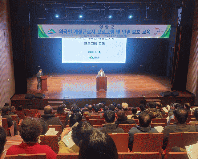 À̳¯ ±³À°Àº ¿ÃÇØ 80³ó°¡, 220¸í ±Ô¸ð·Î ¹èÁ¤ ¿¹Á¤ÀÎ ¿Ü±¹ÀÎ °èÀý±Ù·ÎÀÚµéÀÇ ÀÔ±¹À» ¾ÕµÎ°í °èÀý±Ù·ÎÀÚ °¡Á· 170¸í°ú °í¿ëÁÖ 80¸í µîÀ» ´ë»óÀ¸·Î ½Ç½ÃÇÑ »çÀü ±³À°À¸·Î, ¡â¿Ü±¹ÀÎ °èÀý±Ù·ÎÀÚ ÇÁ·Î±×·¥ ¾È³» ¡â¿Ü±¹ÀÎ ±Ù·ÎÀÚÀÇ Àαǡ¤¹ý·ü¡¤»ýȰ¾ÈÀü ±³À°(Àü³²ÀαDZ³À° À§Ã˰»ç 'À̰æÀÚ' Ãʺù) ¡â¿Ü±¹ÀÎ ±Ù·ÎÀÚÀÇ ÅëÀå °³¼³ ¾È³»(³óÇùÁß¾Óȸ ¿µ¾Ï±ºÁöºÎ) ¼øÀ¸·Î ÁøÇàµÆ´Ù.