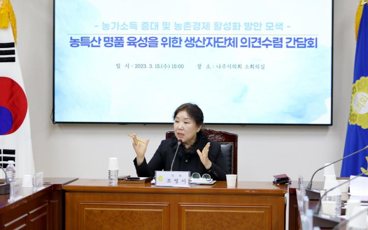 ÀÌ¿¡ Á¶¿µ¹Ì ÀÇ¿øÀº ¡°³óƯ»ê ¸íǰ À°¼ºÀ» À§ÇÑ ½ÇÈ¿¼º ÀÖ´Â Á¤Ã¥ ¸¶·Ã¿¡ ÀÖ¾î »ý»êÀÚÀÇ ¸ñ¼Ò¸®¸¦ ´ã¾Æ³»´Â ÀÏÀº ¸Å¿ì Áß¿äÇÏ´Ù.¡±¸ç "¾ÕÀ¸·Îµµ Áö¼ÓÀûÀ¸·Î »ý»êÀÚ ´Üü¿Í ¼ÒÅëÀÇ ÀÚ¸®¸¦ ¸¶·ÃÇÒ °Í°ú ³ó»ê¹°ÀÇ »ý»ê¡¤ÆÇ¸Å Ȱ¼ºÈ¸¦ À§ÇØ ´Ã °ü½ÉÀ» °¡Áö°í Áö¿ø¹æ¾È ¿¬±¸¿¡ ÃÖ¼±À» ´ÙÇϰڴÙ"°í ¸»Çß´Ù.