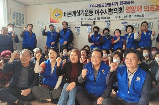 ÇÑÆí ¹Ù¸£°Ô»ì±â¿îµ¿ ¿©¼ö½ÃÇùÀÇȸ´Â Áö³ ´Þ 16ÀÏ µ¹»êÀ¾ ±º³»°æ·Î´ç¿¡¼ ¿µ¾çÁ¦ ÀÇ·áºÀ»çȰµ¿À» ÁøÇàÇßÀ¸¸ç, ¸Å³â ¼Ò¿ÜµÈ ÀÌ¿ôÀ» À§ÇØ »ç¶ûÀÇ ±èÀå±èÄ¡ ³ª´® Çà»ç¸¦ ÆîÄ¡´Â µî ²ÙÁØÇÑ ³ª´®°ú ºÀ»çȰµ¿À» À̾î¿À°í ÀÖ´Ù.