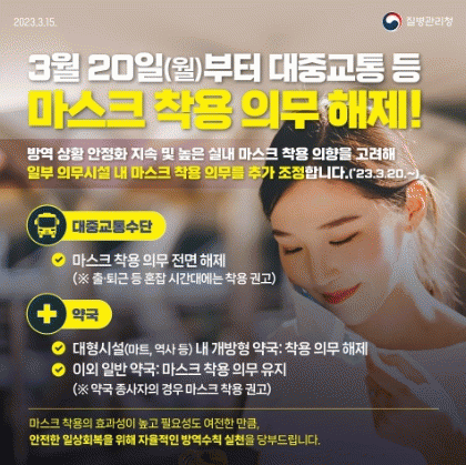 ´Ù¸¸ ´ëÁß±³Åë ¹× °³¹æÇü ¾à±¹¿¡¼ ¸¶½ºÅ© Âø¿ëÀÌ ÇØÁ¦µÇ´õ¶óµµ, È¥Àâ½Ã°£´ë ´ëÁß±³Åë ÀÌ¿ëÀÚ ¹× ¾à±¹ Á¾»çÀÚ¿¡°Ô´Â ¸¶½ºÅ© Âø¿ëÀ» Àû±Ø ±Ç°íÇß´Ù. ¶Ç °íÀ§Ç豺, À¯Áõ»óÀÚ¿Í È¯±â°¡ ¾î·Á¿î ¹ÐÆó.¹ÐÁý.¹ÐÁ¢ 3¹Ð ȯ°æ¿¡ ÀÖ´Â °æ¿ì °è¼ÓÇØ¼ ¸¶½ºÅ©¸¦ Âø¿ëÇÒ °ÍÀ» °·ÂÈ÷ ±Ç°íÇß´Ù.