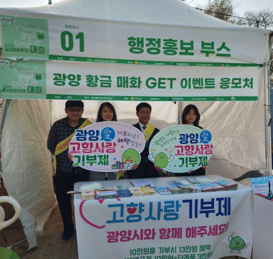 ±¤¾ç½Ã´Â ¸ÅÈÃàÁ¦¸¦ ½ÃÀÛÀ¸·Î 25ÀϺÎÅÍ ÀÌÆ²°£ ¿Á·æ»çÁö µ¿¹é½£ ÀÏ¿ø¿¡¼ ½Ç½ÃµÇ´Â Á¦6ȸ ±¤¾ç õ³â µ¿¹éÃàÁ¦ µî Áö¿ªÃàÁ¦¿¡ È«º¸ºÎ½º¸¦ ¿î¿µÇØ °ü±¤°´°ú Áö¿ª ÁÖ¹ÎÀ» ´ë»óÀ¸·Î °íÇâ»ç¶û±âºÎÁ¦µµ È«º¸¸¦ Áö¼ÓÀûÀ¸·Î ÃßÁøÇÒ °èȹÀÌ´Ù.