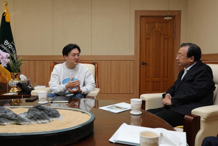 [ÅåÅå´º½º]±¤ÁÖ´ëÇб³(ÃÑÀå ±èµ¿Áø)´Â 3¿ù 17ÀÏ ¿ÀÈÄ È£½É°ü 1Ãþ ´ë°´ç¿¡¼ ´ëÅë·ÉÁ÷¼Ó ±¹°¡±ÕÇü¹ßÀüÀ§¿øÈ¸ ÀÌÁ¤Çö Àü·«±âȹÀ§¿øÀåÀ» ÃÊÃ»ÇØ ¡®»ì±â ÁÁÀº ¿ì¸®Áö¿ª ¹Ì·¡¿Í ¹ßÀü¹æ¾È¡¯¿¡ ´ëÇÑ ÃÊûƯ°À» ½Ç½ÃÇß´Ù.