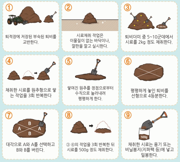 ºÎ¼÷µµ °Ë»ç¸¦ À§ÇÑ Åðºñ ½Ã·á äÃë ¹æ¹ýÀº ½Ã·á¸¦ ´ëÇ¥ÇÒ ¼ö ÀÖ´Â 5~6°÷¿¡¼ äÃë ÈÄ ±ú²ýÇÑ ±òÆÇ¿¡ ¿Å°Ü ±ÕÀÏÇÏ°Ô È¥ÇÕÇÏ°í ¿øÃß 4ºÐ¹ý¿¡ µû¶ó ÃÖÁ¾ 500g ½Ã·á¸¦ äÃëÇÏ¸é µÈ´Ù.