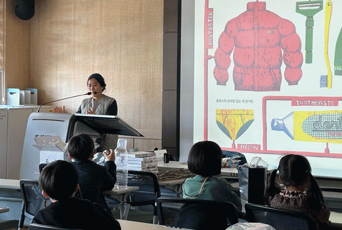 ±èÁöÇü ÀÛ°¡´Â Èñ¸Áµµ¼°ü¿¡¼ 5¿ù±îÁö ¿î¿µÇϴ ȯ°æ ±âȹÀü½Ã'³» Ä£±¸ Áö±¸'¿¡ ±×¸²Ã¥ ¡®¹Ì¼¼¹Ì¼¼ÇÑ ¸À Çöó¼öÇÁ¡¯ÀÇ ¿øÈ¸¦ Àü½Ã ÁßÀÌ´Ù. ±×¸²Ã¥¿¡´Â ÀÚ²Ù ¸¸µé¾î ¾²°í ¹ö·ÁÁö´Â ÇÃ¶ó½ºÆ½ ¼¼»ó¿¡ ´øÁö´Â ÀÛ°¡ÀÇ ¸Þ½ÃÁö°¡ µé¾îÀÖ´Ù.