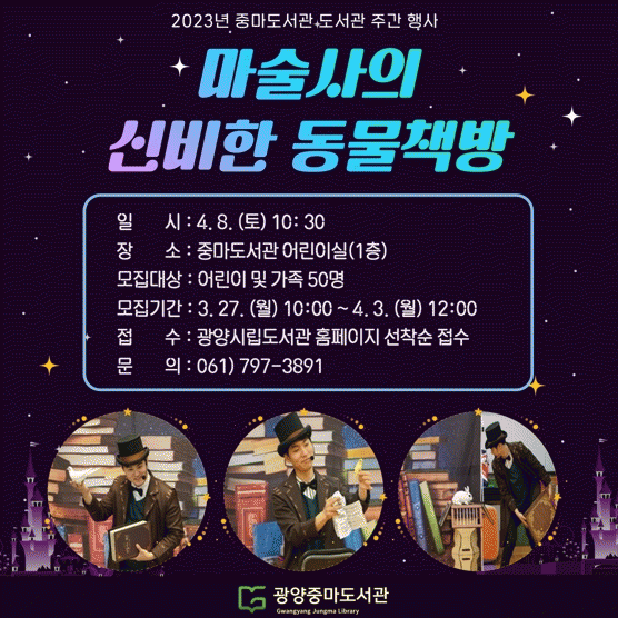 ¿À´Â 27ÀϺÎÅÍ ±¤¾ç½Ã¸³µµ¼°ü ´©¸®Áý¿¡¼ ¾î¸°ÀÌ¿Í °¡Á·À» ´ë»óÀ¸·Î °ø¿¬ °ü¶÷ Èñ¸ÁÀÚ¸¦ ¸ðÁýÇϸç, °ø¿¬¿¡ ´ëÇÑ ±Ã±ÝÇÑ »çÇ×Àº ½Ã¸³µµ¼°ü ´©¸®ÁýÀ» ¹æ¹®Çϰųª Á߸¶µµ¼°üÀ¸·Î ¹®ÀÇÇϸé ÀÚ¼¼È÷ ¾È³»¹ÞÀ» ¼ö ÀÖ´Ù.