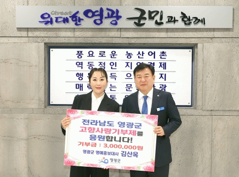 ÇÑÆí °Á¾¸¸ ¿µ±¤±º¼ö´Â ¡°¿µ±¤±º °íÇâ»ç¶û±âºÎÁ¦À» ÀÀ¿øÇØ ÁֽŠ¿µ±¤±º ¸í¿¹È«º¸´ë»ç ±è»ê¿Á´Ô²² Áø½ÉÀ¸·Î °¨»çµå¸®¸ç, ¼ÒÁßÇÑ ±âºÎ±ÝÀÌ ¿µ±¤±º ¹ßÀü¿¡ ±â¿©ÇÏ´Â µ¥ ¾²ÀÏ ¼ö ÀÖµµ·Ï Çϰڴ١±¶ó°í ¸»Çß´Ù.
