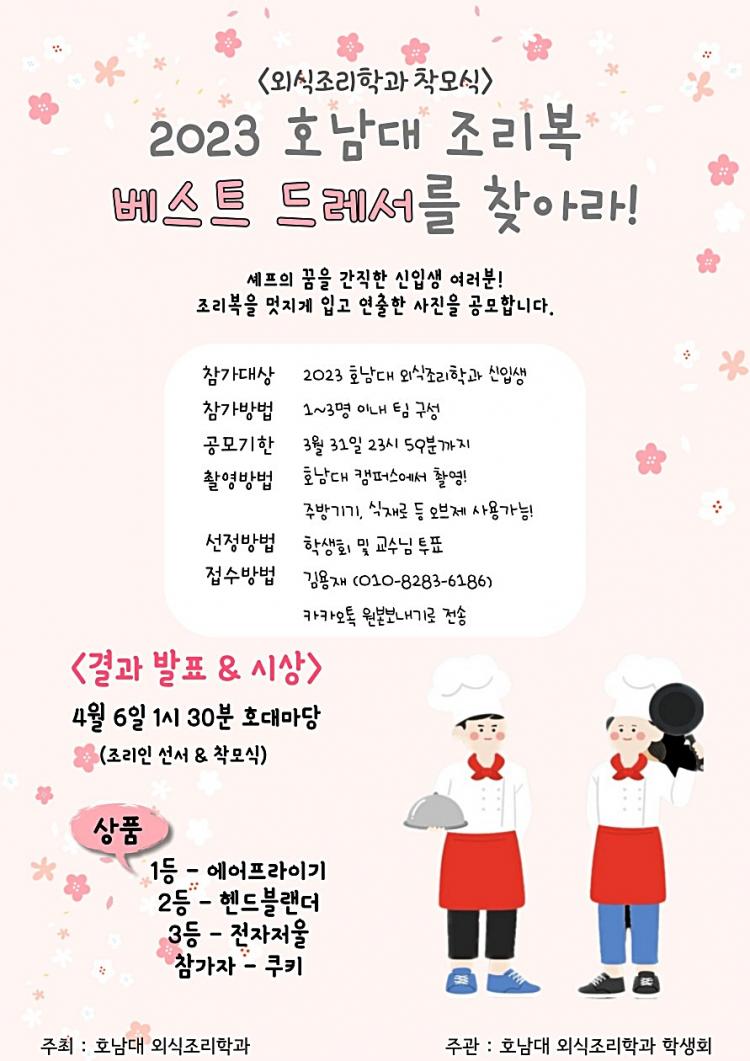¼ÎÇÁÀÇ ²ÞÀ» ¾È°í ÀÔÇÐÇÑ ½ÅÀÔ»ý 63¸íÀ» ´ë»óÀ¸·Î ÁøÇàµÇ´Â À̹ø Çà»ç´Â °³ÀÎ ¶Ç´Â 2¡3¸íÀÌ ÆÀÀ» ±¸¼º, Ä·ÆÛ½º³ª Á¶¸®½Ç¿¡ ¸¶·ÃµÈ Á¶¸®±â±¸¿Í ½ÄÀç·á µî ¿ÀºêÁ¦¸¦ Ȱ¿ëÇØ Á¶¸®º¹À» ÀÔ°í ÃÔ¿µÇÑ »çÁøÀ» 3¿ù 31ÀϱîÁö °ú Çлýȸ·Î Á¢¼öÇÏ¸é µÈ´Ù.