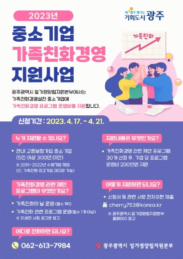 ¡®°¡Á·Ä£È°ü·Ã ÇÁ·Î±×·¥¡¯ ºÎºÐÀº ¡ã°¡Á·Âü¿© ÇÁ·Î±×·¥ ¿î¿µ ¡ã°¡Á· ¿©°¡È°µ¿ Áö¿ø ¡ã±Ù·ÎÀÚ »ó´ã ÇÁ·Î±×·¥ ¿î¿µ ¡ãÀÚ³à ±³À°Áö¿ø Á¦µµ ¡ã±Ù·ÎÀÚ ÀÚ±â°è¹ß Áö¿ø ÇÁ·Î±×·¥ ¡ã±Ù·ÎÀÚ ¶Ç´Â °¡Á· °Ç°Áö¿øÁ¦µµ ¿î¿µ µî 6°³ À¯Çü Áß 1°³¸¦ ¼±ÅÃÇØ ¿î¿µÇÏ¸é µÈ´Ù. ±â¾÷ÀÇ °í¿ë Àοø°ú ±Ô¸ð¿¡ ¸Â°Ô º¹¼ö ¼±Åõµ °¡´ÉÇÏ´Ù. ¡®°¡Á·Ä£È °ü·Ã ÇÁ·Î±×·¥¡¯Àº ½Åû±â¾÷ÀÌ 6°³ À¯Çü°ú °ü·ÃµÈ ¾ÆÀ̵ð¾î¸¦ ³» ¿î¿µÇÏ¸é µÈ´Ù.