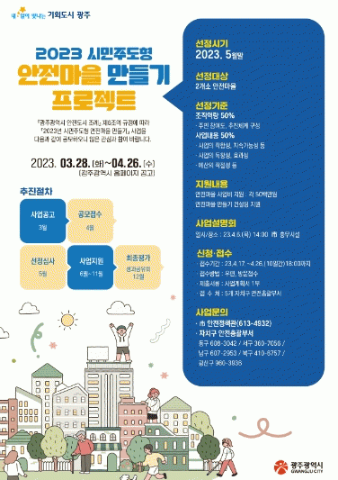 ¡®½Ã¹ÎÁÖµµÇü ¾ÈÀü¸¶À» ¸¸µé±â ÇÁ·ÎÁ§Æ®¡¯´Â ¹Î¼± 8±â °ø¾à»ç¾÷À¸·Î ¸¶À»¿¡¼ºÎÅÍ ¾ÈÀüÇÑ °øµ¿Ã¼¸¦ ½ÇÇöÇϴµ¥ ¸ñÇ¥¸¦ µÎ°í, Áö¿ªÁÖ¹ÎÀÌ Á÷Á¢ ¸¶À»ÀÇ À§Çè¿äÀÎÀ» Á¶»çžºÐ¼®Ç