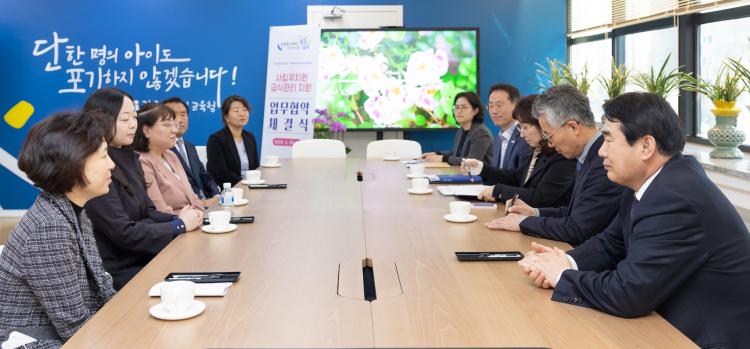 À̳¯ ¾÷¹«Çù¾à½Ä¿¡´Â ¼µ¿ÁÖ ³²±¸ ¾î¸°À̱޽İü¸®Áö¿ø¼¾ÅÍÀåÀ» Æ÷ÇÔÇÑ ±¤ÁÖ 5°³±¸ ¾î¸°ÀÌ(»çȸº¹Áö)±Þ½Ä°ü¸®Áö¿ø¼¾ÅÍÀå°ú ±¤Áֽñ³À°Ã» ÀÌÁ¤¼± ±³À°°¨, Á¤Àº³² ÇàÁ¤±¹Àå, ¾ç°üö ÀçÁ¤°úÀå , À±ÇöÁÖ ±Þ½ÄÆÀÀå µîÀÌ Âü¼®ÇßÀ¸¸ç, »ç¸³À¯Ä¡¿ø ±Þ½Ä°ü¸® Áö¿ø ´ë¾ÈÀ» ¸¶·ÃÇϰí À¯¾ÆÀÇ ¾ÈÀüÇϰí Áú ³ôÀº ±Þ½Ä Á¦°øÀ» À§ÇØ »óÈ£ Çù·ÂÇϱâ·Î Çß´Ù.