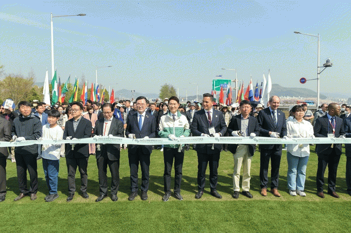 ³ë°ü±Ô ¼øÃµ½ÃÀå°ú °¢±¹ ´ë»ç, ½Ã¹Î°ú û¼Ò³âÀº ±×¸°¾ÆÀÏ·£µå¸¦ Ãâ¹ßÇØ ³²¹® ÀÔ±¸±îÁö ÇàÁøÇÑ ÈÄ ½ºÅ©¸°À» ÅëÇØ ±è ´ëÇ¥¿Í ÀÌ ´ëÇ¥ÀÇ ÃàÇÏ ¿µ»óÀ» ½ÃûÇß´Ù.