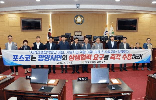 ±×¸®°í, ¡°Æ÷½ºÄÚ¿Í Áö¿ªÀÇ µ¿¹Ý»ó»ýÀÇ °¡Ä¡¸¦ ³»°É°í ±¤¾çÁö¿ª»ó»ýÇù·ÂÇùÀÇȸ°¡ ±¸¼ºµÈ Áö 1³âÀÌ Áö³µ´Âµ¥µµ »ó»ýÇù·Â ÇÕÀǹ®Á¶Â÷ ¸¸µéÁö ¸øÇϰí ÀÖ´Â Á¡°ú ±¤¾çÁ¦Ã¶¼Ò ¿ø·áºÎµÎÀÇ ¿À¿°¹°Áú ¹Ù´å¹° À¯ÀÔ µî ȯ°æ¿À¿°À» ºó¹øÇÏ°Ô ¹ß»ý½ÃŰ´Â »ç·Ê¸¦ º¸¸é, Æ÷½ºÄÚ°¡ ±â¾÷½Ã¹Î°ú ESG °æ¿µÀ̳äÀ» ¿î¿îÇÒ ÀÚ°ÝÀÌ ÀÖ´ÂÁö Àǽɽº·´´Ù.¡±°í °·ÂÇÏ°Ô ºñÆÇÇß´Ù.