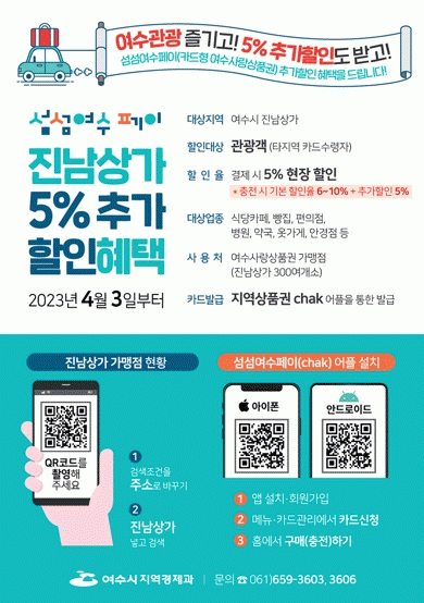 À̹ø ÇÒÀÎÀº Ÿ Áö¿ª¿¡¼ Ä«µå¸¦ ¼ö·ÉÇÑ °ü±¤°´ÀÌ Áø³²»ó°¡ ³» ¿©¼ö»ç¶û»óǰ±Ç °¡¸ÍÁ¡¿¡¼ ¡®¼¶¼¶¿©¼öÆäÀÌ¡¯·Î °áÁ¦ÇÏ¸é ¿ù ÃÖ´ë 25000¿ø±îÁö °áÁ¦±Ý¾×ÀÇ 5% ÇöÀåÇÒÀÎÀ» ¹ÞÀ» ¼ö ÀÖ´Ù.