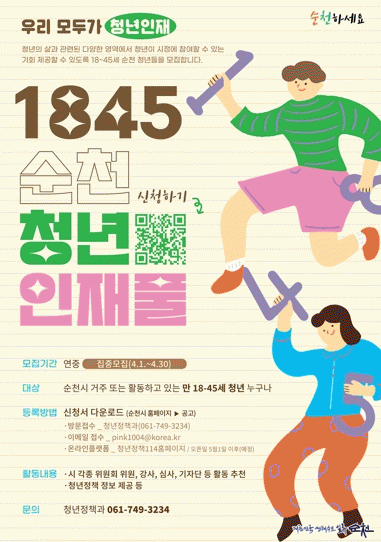 ¡®1845¼øÃµÃ»³âÀÎÀçÇ®¡¯À̶õ 18~45¼¼±îÁöÀÇ Ã»³â Âü¿©¸¦ È®´ëÇÏ°í ½Ã¿¡¼ ±¸¼º¡¤¿î¿µÇÏ´Â °¢Á¾ À§¿øÈ¸, û³â°»ç µî ÀÎ·Â Ãæ¿øÀÌ ÇÊ¿äÇÒ ¶§ ÀûÇÕÇÑ ÀηÂÀ» ¹Ì¸® È®º¸Çϱâ À§ÇØ ÀηÂÀ» »ó½Ã µî·ÏÇÏ´Â Á¦µµÀÌ´Ù.