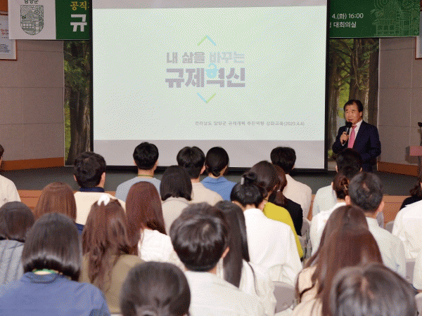 °ÀÇ´Â ÀλçÇõ½Åó °»çÀÌÀÚ Àû±ØÇàÁ¤ ¹× ±ÔÁ¦°³ÇõÀ§¿øÀ¸·Î ±ÔÁ¦Çõ½Å ºÐ¾ßÀÇ Àü¹®°¡ÀÎ Àü¿µÇÏ °»ç¸¦ Ãʺù, Áö¿ª»ê¾÷À» Ű¿ì°í »îÀÇ ÁúÀ» ³ôÀÌ´Â ±ÔÁ¦Çõ½ÅÀÇ Âü ÀÇ¹Ì¿Í ±º¹Î ÇູÀ» À§ÇÑ °øÁ÷ÀÚÀÇ Àû±ØÇàÁ¤ ¹× ½ÇõÀûÀÎ ÀÚ¼¼¸¦ °ÀÇÇß´Ù.