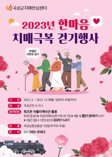 Çà»ç´Â 4¿ùºÎÅÍ 12¿ù±îÁö ÁøÇàµÇ¸ç, ¸Å¿ù 1ÀϺÎÅÍ 20ÀϱîÁö 10¸¸ º¸ °ÉÀ½ ´Þ¼ºÀ» ¸ñÇ¥·Î Çϴ ç¸°Áö°¡ ¿î¿µµÈ´Ù. Âü¿© ¹æ¹ýÀº ¸ð¹ÙÀÏ °È±â ¾ÛÀÎ ¡®¿öÅ©¿Â¡¯À» ¼³Ä¡ÇØ È¸¿ø°¡ÀÔÀ» Çϰí, ¡®°î¼º±ºÄ¡¸Å¾È½É¼¾ÅÍ¡¯ Ä¿¹Â´ÏƼ¿¡ °¡ÀÔÇÑ ÈÄ Ã§¸°Áö¿¡ Âü¿©ÇÏ¸é µÈ´Ù. ÇÏ·ç 6õ º¸ ±âÁØÀ¸·Î ¸ñÇ¥ °ÉÀ½ ¼ö 10¸¸ º¸¸¦ ´Þ¼ºÇÑ »ç¶÷µé Áß ¹«ÀÛÀ§ Ãß÷À» ÅëÇØ 100¸í¿¡°Ô ¸ð¹ÙÀÏ ½Éû»óǰ±Ç 1¸¸ ¿øÀ» Áö±ÞÇÑ´Ù.