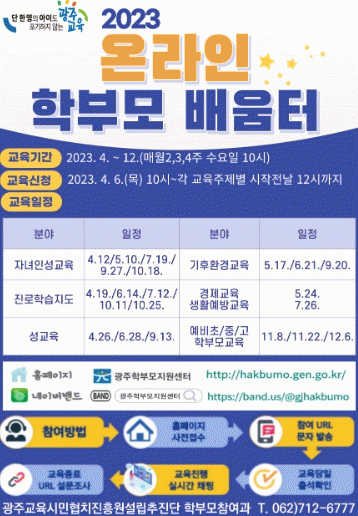 ÇÑÆí ±³À°½ÅûÀº 6ÀÏ 10½ÃºÎÅÍ °¢ °úÁ¤º° ±³À°Àü³¯ 12½Ã±îÁö ±¤ÁÖÇкθðÁö¿ø¼¾ÅÍ ´©¸®Áý¿¡¼ »çÀü ½Åû °¡´ÉÇÏ´Ù.