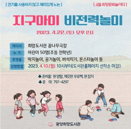 Âü¿©¸¦ ¿øÇÏ´Â ¾î¸°À̵éÀº ¿À´Â 10ÀÏ ¿ÀÀü 10½ÃºÎÅÍ ±¤¾ç½Ã¸³µµ¼°ü ´©¸®ÁýÀ» ÅëÇØ ½ÅûÇÒ ¼ö ÀÖÀ¸¸ç, ±âŸ ÀÚ¼¼ÇÑ ¹®ÀÇ´Â Èñ¸Áµµ¼°üÀ¸·Î ÀüÈÇÏ¸é µÈ´Ù.