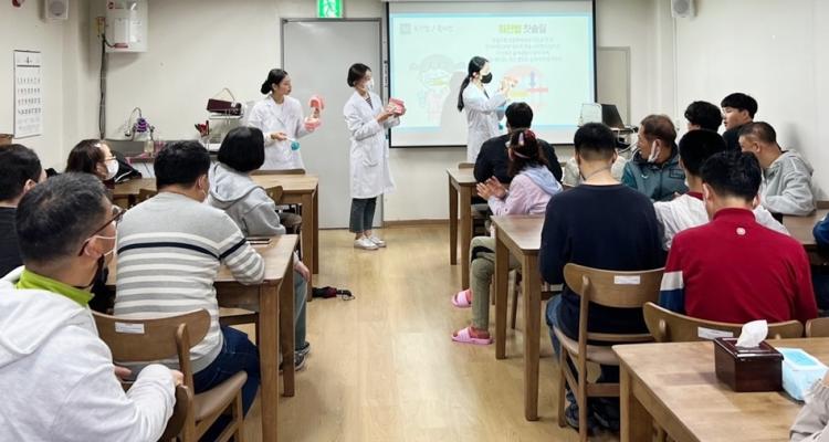 ÇлýµéÀº ºÀ»ç Ȱµ¿¿¡ ¾Õ¼ Àå¾ÖÀÎ ÀÛ¾÷Àڵ鿡°Ô »çÀü ±¸°º¸°Ç±³À°À» ½Ç½ÃÇѵ¥ À̾î Ä¡¾Æ¸ðÇü°ú °³°³ÀÎÀÇ ¿Ã¹Ù¸¥ Ä©¼ÖÁú¹ý ±³Á¤, ÇÁ·¹Á¨Å×À̼ÇÀ» ÀÌ¿ëÇÏ¿© ¿Ã¹Ù¸¥ Ä©¼ÖÁúÀÌ ±¸°º´ ¿¹¹æ¿¡ Áß¿äÇÔÀ» ¼³¸íÇÏ´Â µî Àü°ø ¿¬°è ºÀ»çȰµ¿À» ½ÃÇàÇß´Ù.