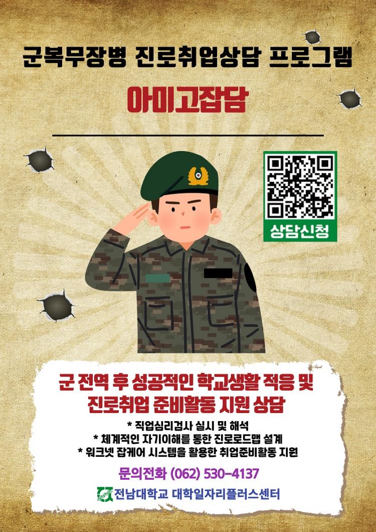 '¾Æ¹Ì°íÀâ´ã'Àº ±ºº¹¹« ÁßÀÎ À庴µéÀÌ ±º Àü¿ª ÈÄ Çб³»ýȰ ÀûÀÀ¿¡ ¾î·Á¿òÀ» °ÞÀ¸¸ç Áø·ÎÃë¾÷¿¡ ´ëÇØ °í¹ÎÀ» ÇÑ´Ù´Â µ¥ Âø¾ÈÇÑ ÇÁ·Î±×·¥ÀÌ´Ù.