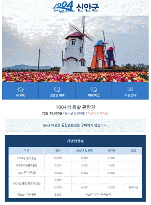 ½Å¾È±º¿¡ µû¸£¸é '½Å¾È±º ¸ð¹ÙÀÏÅëÇÕ°ü¶÷±Ç'Àº ½Å¾È±ºÀÇ ´ëÇ¥ °ü±¤¸í¼ÒÀÎ 1004¼¶ºÐÀçÁ¤¿ø, ¼¼°èȼ®±¤¹°¹Ú¹°°ü, 100¹ÂÁö¾öÆÄÅ©, ¿¡·Î½º¼°¢¹Ú¹°°ü, 1004¼¶Æ«¸³È«¸ÅÈÁ¤¿øÀ» ¼ºÀαâÁØ 15,000¿ø¿¡ ÀÔÀå°¡´ÉÇÏ´Ù. °ü±¤°´ÀÌ ¼±È£ÇÏ´Â ÆÛÇü¶Àº º¸¶ó»ö ¿ÊÀ» ÀÔ°í ¿À¸é ¹«·áÀÔÀåÀÌ °¡´ÉÇϱ⿡ Á¦¿ÜÇß´Ù.