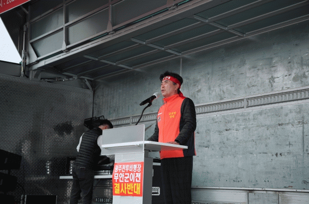 À̳¯ ±è°æÇö ÀÇÀåÀº ±Ôź ¹ß¾ð¿¡¼¡°¿ì¸® Áö¿ª ¹«¾È±º¹ÎÀÇ ÀǰßÀ» ¹«½ÃÇÑ Ã¤ ÀüÅõºñÇàÀåÀÇ ÀÌÀüÀ» ÃßÁøÇϰí ÀÖ´Â ±¹¹æºÎ¿Í ±¤Áֽô ¹«¾È±º¹Î¿¡°Ô Áï°¢ »çÁËÇÏ°í ¹«¾È±ºÀ¸·ÎÀÇ ÀÌÀü°èȹÀ» Áï°¢ Áß´ÜÇØ¾ß ÇÑ´Ù¡±¸ç¡°¹«¾È±ºÀÇȸ´Â ¾î¶°ÇÑ °æ¿ì¶óµµ ±¤ÁÖ ÀüÅõºñÇàÀåÀÇ ¹«¾È±ºÀ¸·Î¼ÀÇ ÀÌÀüÀ» °·ÂÈ÷ ¹Ý´ëÇϸç ÀÌÀü ÀúÁö¸¦ À§ÇØ 10¸¸ ±º¹Î¿©·¯ºÐ°ú ¶æ°ú ÇൿÀ» ÇÔ²² Çϰڴ١±°í ¸»Çß´Ù.