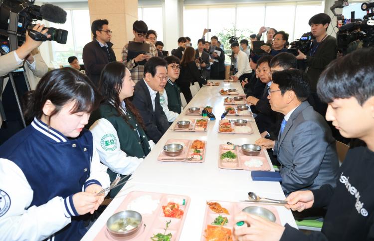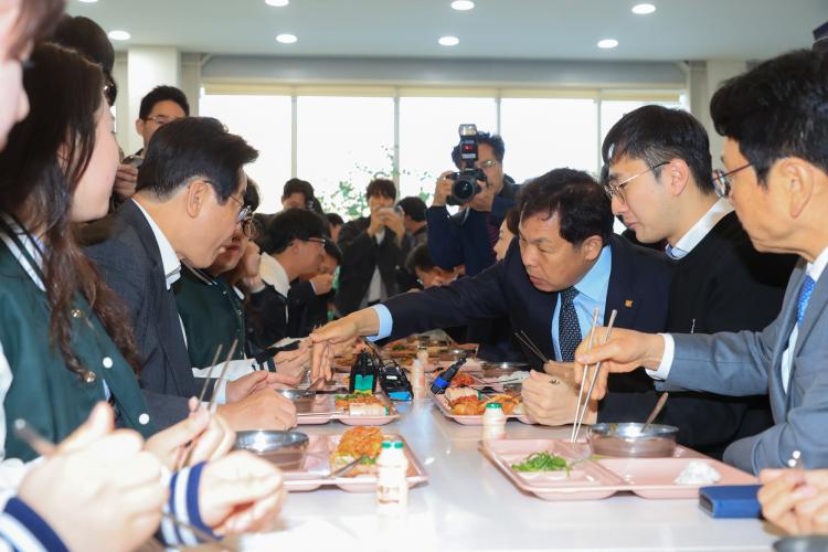 ÀÌÀç¸í ¹ÎÁÖ´ç ´ëÇ¥´Â À̳¯ Àü³²´ë Á¦1Çлý¸¶·ç ½Ä´ç¿¡¼ Á¤À±Áß Àü³²´ë ÃÑÇлýȸÀå µî Çлýµé°ú ÇÔ²² ½Ä»çÇϸç, ¡®Ãµ¿øÀÇ ¾ÆÄ§¹ä¡¯¿¡ ´ëÇÑ ÇлýµéÀÇ ÀǰßÀ» µè°í, Áö¿ø È®´ë¸¦ À§ÇØ ´õ ³ë·ÂÇÏ°Ú´Ù°í ¹àÇû´Ù.