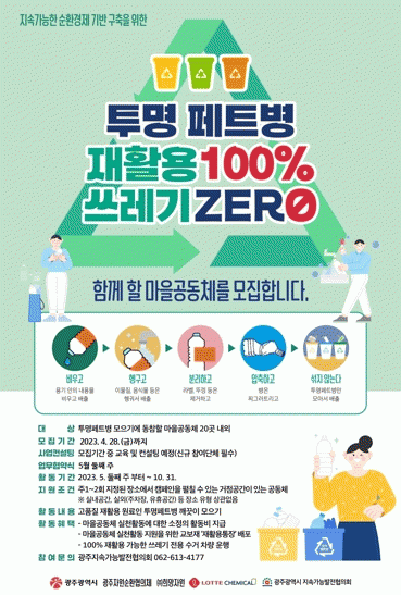 ÀÚ¿ø¼øÈ¯ ½Ã¹Î½ÇõÀº ¿ÃÇØ ù »ç¾÷À¸·Î ¿À´Â 28ÀϱîÁö ¡®Åõ¸í ÆäÆ®º´ ÀçȰ¿ë 100% ¾²·¹±â ZERO Ä·ÆäÀΡ¯À» ÇÔ²²ÇÒ ¸¶À» °øµ¿Ã¼ 20¿© °÷À» ¸ðÁýÇÑ´Ù.