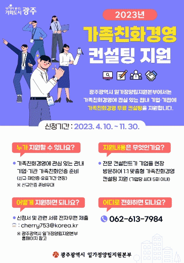 °¡Á·Ä£È°æ¿µÄÁ¼³ÆÃÀº ÃÑ 15°³ ±â¾÷¡¤±â°üÀ» Áö¿øÇϸç, ¼±Á¤±â¾÷¿¡´Â °øÀγ빫»ç, °æ¿µÁöµµ»ç, °¡Á·Ä£ÈÀü¹®Àη µî °¢ ºÐ¾ß Àü¹®°¡µéÀ» 1 ´ë 1·Î ¸ÅÄªÇØ ¸ÂÃãÇü ÄÁ¼³ÆÃÀ» ÁøÇàÇÑ´Ù. ÄÁ¼³ÆÃ ºñ¿ëÀº Àü¾× ½Ã¿¡¼ Áö¿øÇÑ´Ù.