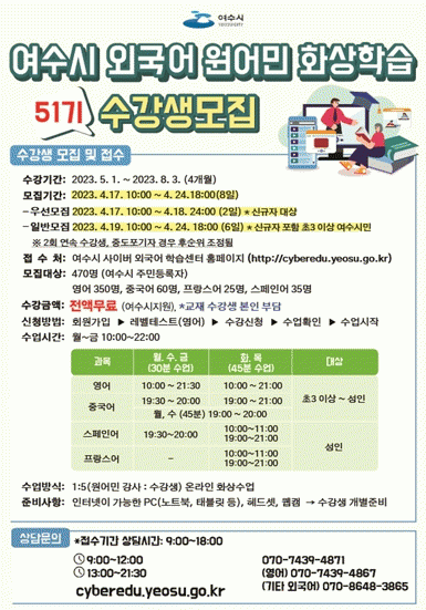 ½ÅûÀº ÃʵîÇб³ 3Çгâ ÀÌ»ó ¿©¼ö½Ã¹ÎÀÌ¸é ´©±¸³ª, ¡®¿©¼ö½Ã »çÀ̹ö¿Ü±¹¾îÇнÀ¼¾ÅÍ È¨ÆäÀÌÁö¡¯¿¡¼ ÇÒ ¼ö ÀÖ´Ù.