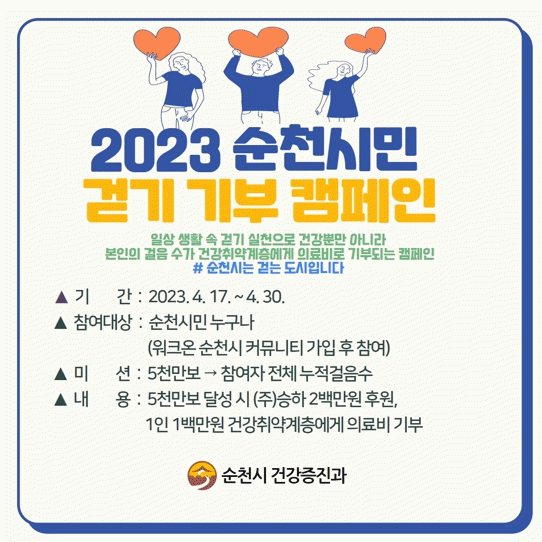 ¼øÃµ½Ã °ü°èÀڴ¡°°È±â·Î ÀÚ½ÅÀÇ °Ç°µµ ì±â°í ÇÑ °ÉÀ½ ÇÑ °ÉÀ½ÀÌ °Ç° Ãë¾à°èÃþ¿¡°Ô ¶Ç ´Ù¸¥ Èñ¸ÁÀ» ½É¾îÁÖ´Â ±âȸ¸¦ ÁÖ´Â µî °È±â·Î ´ÙÇÔ²² °Ç° ³ª´®À» ½ÇõÇÏ´Â °È±âµµ½Ã ¼øÃµÀ» ¸¸µé¾î ³ª°¥ °èȹÀÌ´Ù¡±¶ó°í ¸»Çß´Ù.