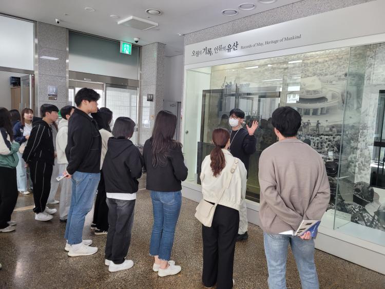 5¡¤18¹ÎÁÖȿ 43ÁÖ³âÀ» ÇÑ ´Þ¿© ¾ÕµÎ°í ¿µ³²´ë Çлý 40¸íÀÌ Áö³ 8ÀÏ ±¤ÁÖ¸¦ ã¾Æ ±¹¸³ 5¡¤18¹ÎÁÖ¹¦Áö, 5¡¤18¹ÎÁÖȿ±â·Ï°ü, ÀüÀϺôµù µîÀ» µ¹¾Æº¸°í Á¶¼±´ëÇб³ Çлýµé°ú ±³·ùÇÏ´Â ½Ã°£À» °¡Á³´Ù.