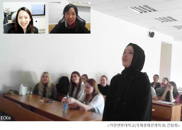 ¶ÇÇÑ 4¿ù 6ÀÏ ÁøÇàµÈ °£´ãȸ¿¡´Â ÀÌ°æ ±³¼ö(Çѱ¹¾î±³À°Çаú), ÇöÁö¿µ °»ç(Çѱ¹¾î±³À°¿ø)¿Í 'Çѱ¹¾î ¾îÈÖ È°¿ë ¿¬½À' ¼ö¾÷À» µè°í ÀÖ´Â Ä«ÀÜ¿¬¹æ´ë ±è¿µ¼÷ ±³¼ö(±¹Á¦°æÁ¦°ü°èÇаú) ¹× ÇлýµéÀÌ Âü¿©ÇÑ °¡¿îµ¥, Çѱ¹ À½½Ä, µå¶ó¸¶, K-POP¿¡ ´ëÇØ Çѱ¹¾î·Î À̾߱âÇßÀ¸¸ç, "·¯½Ã¾Æ¿¡´Â Çѱ¹ »ç¶÷µéÀÌ ¸¹Áö ¾Ê¾Æ ¼ÒÅëÀÇ ±âȸ°¡ ¾ø¾î ¾Æ½±´Ù"¸ç, "VOD ¼ö¾÷ÀÌ Çѱ¹¾î °øºÎ¿¡ ¸¹Àº µµ¿òÀÌ µÇ¾ú´Ù"°í ¼Ò°¨À» ¹àÇû´Ù.
