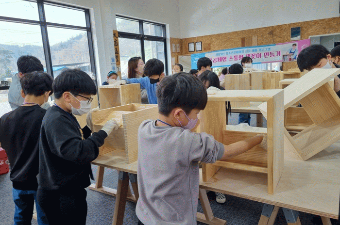 À̹ø ¸ñ°øÃ¼Çè ÇÁ·Î±×·¥¿¡ Âü¿©ÇÑ Ã»¼Ò³âµéÀº ¸ñÀ縦 ¼ÕÁúÇÏ¸é¼ ÀÚ½ÅÀÌ Á÷Á¢ µðÀÚÀÎÇÑ °¡±¸¸¦ ¸¸µé¾ú´Ù. ¸ñÀ縦 »çÆ÷ÁúÇÏ°í ¿ÀÀÏ ¸¶°¨À¸·Î Á¤¼º½º·´°Ô ¼Õ¼ö Á¦ÀÛÇÏ´Â °úÁ¤À» ÅëÇØ û¼Ò³âµéÀº Å« º¸¶÷À» ´À³¢¸ç ¸ñ°øÀÇ ¸Å·Â¿¡ ºüÁ³´Ù.