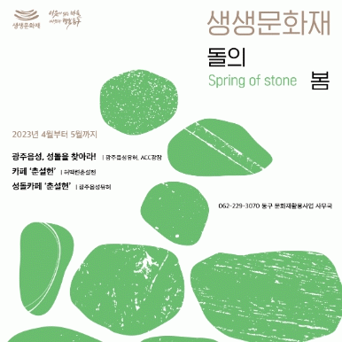 µ¿±¸´Â 7³â ¿¬¼Ó ¹®ÈÀçû ÁÖ°ü ¹®ÈÀç Ȱ¿ë»ç¾÷ÀÌ ¼±Á¤µÊ¿¡ µû¶ó ¡®µ¹ÀÇ º½-spring of stone¡¯À̶ó´Â ÁÖÁ¦·Î »ý»ý¹®ÈÀç °³ÃÖ ±â°£µ¿¾È ¡ãÄ«Æä ¡®Ãá¼³Ç塯 ¡ã±¤ÁÖÀ¾¼º, ¼ºµ¹À» ã¾Æ¶ó! ¡ã¼ºµ¹Ä«Æä ¡®Ãá¼³Ç塯À» ¿î¿µÇÒ ¿¹Á¤ÀÌ´Ù.
