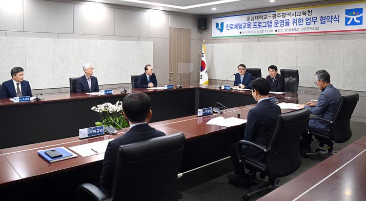 [ÅåÅå´º½º]È£³²´ëÇб³(ÃÑÀå ¹Ú»óö)´Â 4¿ù 14ÀÏ È£³²´ëÇб³ º»ºÎµ¿ 3Ãþ ±³¹«À§¿øÈ¸Àǽǿ¡¼ ±¤ÁÖ±¤¿ª½Ã±³À°Ã»(±³À°°¨ ÀÌÁ¤¼±)°ú »óÈ£ ¾÷¹« Çù·Â ü°è ±¸Ãà°ú Áø·Î üÇè ±³À° ÇÁ·Î±×·¥ ¿î¿µÀ» À§ÇÑ Çù¾à½ÄÀ» ü°áÇß´Ù.