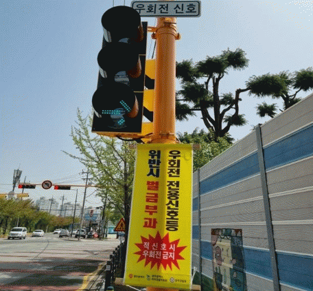 ¿ìȸÀü Àü¿ë½ÅÈ£µîÀÌ ¼³Ä¡µÈ °÷¿¡¼´Â ³ì»öÈ»ìÇ¥ ¿ìȸÀü ½ÅÈ£¿¡¸¸ ¿ìȸÀüÇÒ ¼ö ÀÖ´Ù.