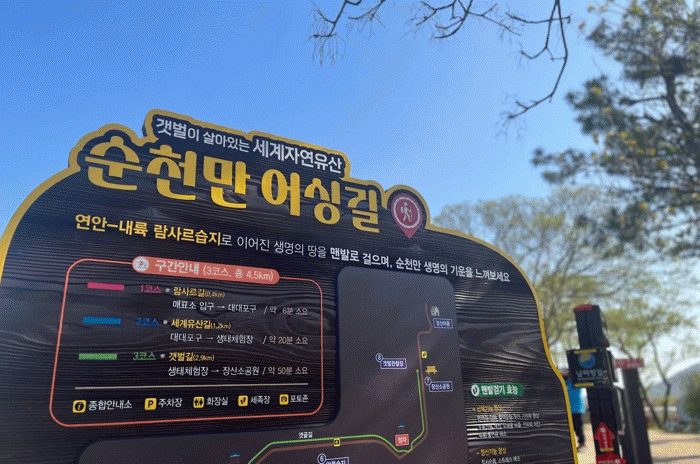 ¼øÃµ¸¸½ÀÁö¿¡´Â ¶÷»ç¸£±æ(0.4km), ¼¼°èÀ¯»ê±æ(1.2km), °¹¹ú±æ(2.9km)±îÁö ¾à 5kmÀÇ ¾î½Ì±æ(Earthing trail) ÄÚ½º°¡ ¸¶·ÃµÇ¾î ÀÖ´Ù.