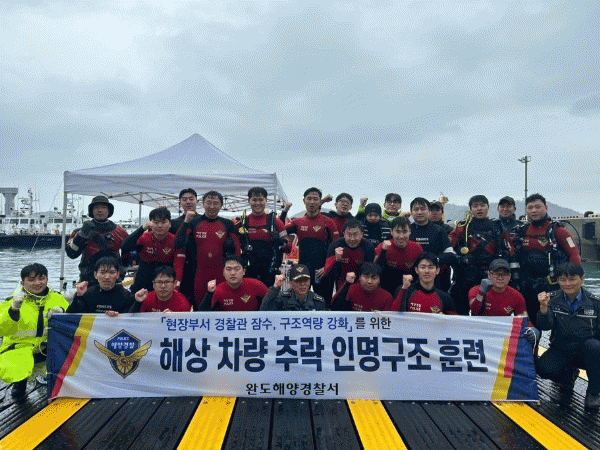 À̹ø ÈÆ·ÃÀº Áö³´Þ ¿Ïµµ±º ´ç¸ñÇ׿¡¼ Â÷·®ÀÌ ÇØ»ó¿¡ Ãß¶ôÇÏ´Â »ç°í°¡ ¹ß»ýÇÏ´Â µî ¿¬¾ÈÇØ¿ª Àθí»ç°í½Ã ±¸Á¶¸¦ À§ÇØ, ÁöÈÖ°üÀÌ Á÷Á¢ ÇØ°æ±¸Á¶´ë¿Í ÇÔ²² ÇöÀåºÎ¼ °æÂû°ü(16¸í) ´ë»óÀ¸·Î ÈÆ·ÃÀ» ½Ç½ÃÇß´Ù.